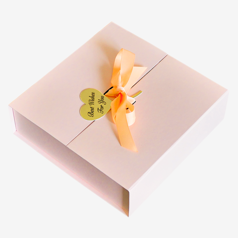 ケーキ用ダブルフリップトップドアギフトボックス、シルクリボンとゴールデンハートトッパー付きの自動折りたたみ、カスタマイズ可能な紙、サイズと色