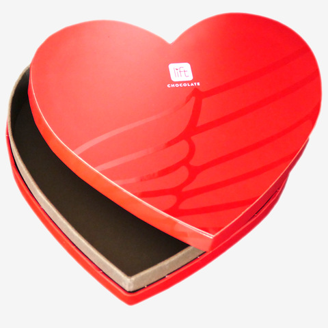 뚜껑과 맞춤형 리본이 있는 맞춤형 하트 모양의 선물 상자, 식품 안전 골드 라이너가 있는 소프트 터치 초콜릿 상자 포장