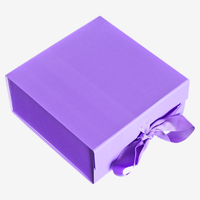 화장품 포장용 리본이 달린 접이식 보라색 선물 상자, 맞춤형 포장, 인쇄 및 라이너가 있는 접을 수 있는 선물 상자
